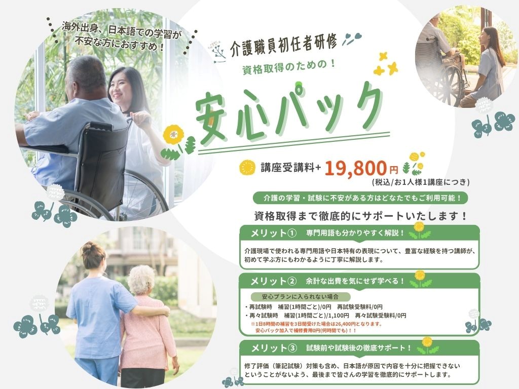 【資格取得のための安心パック】◆海外出身、又は日本語での学習が不安な方にオススメの安心プラン♪資格取得まで徹底サポートが付いてくる初任者研修講座!◆